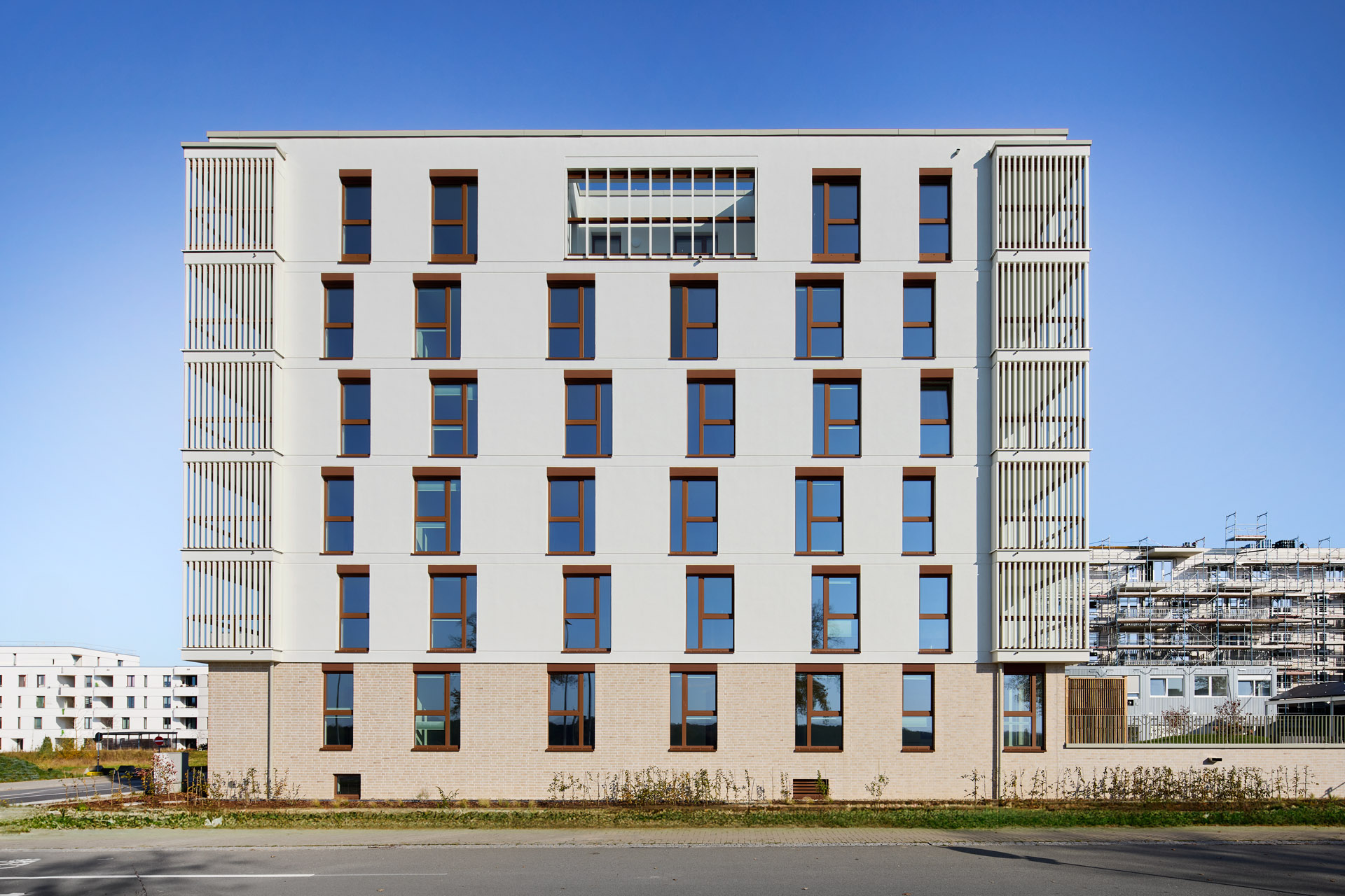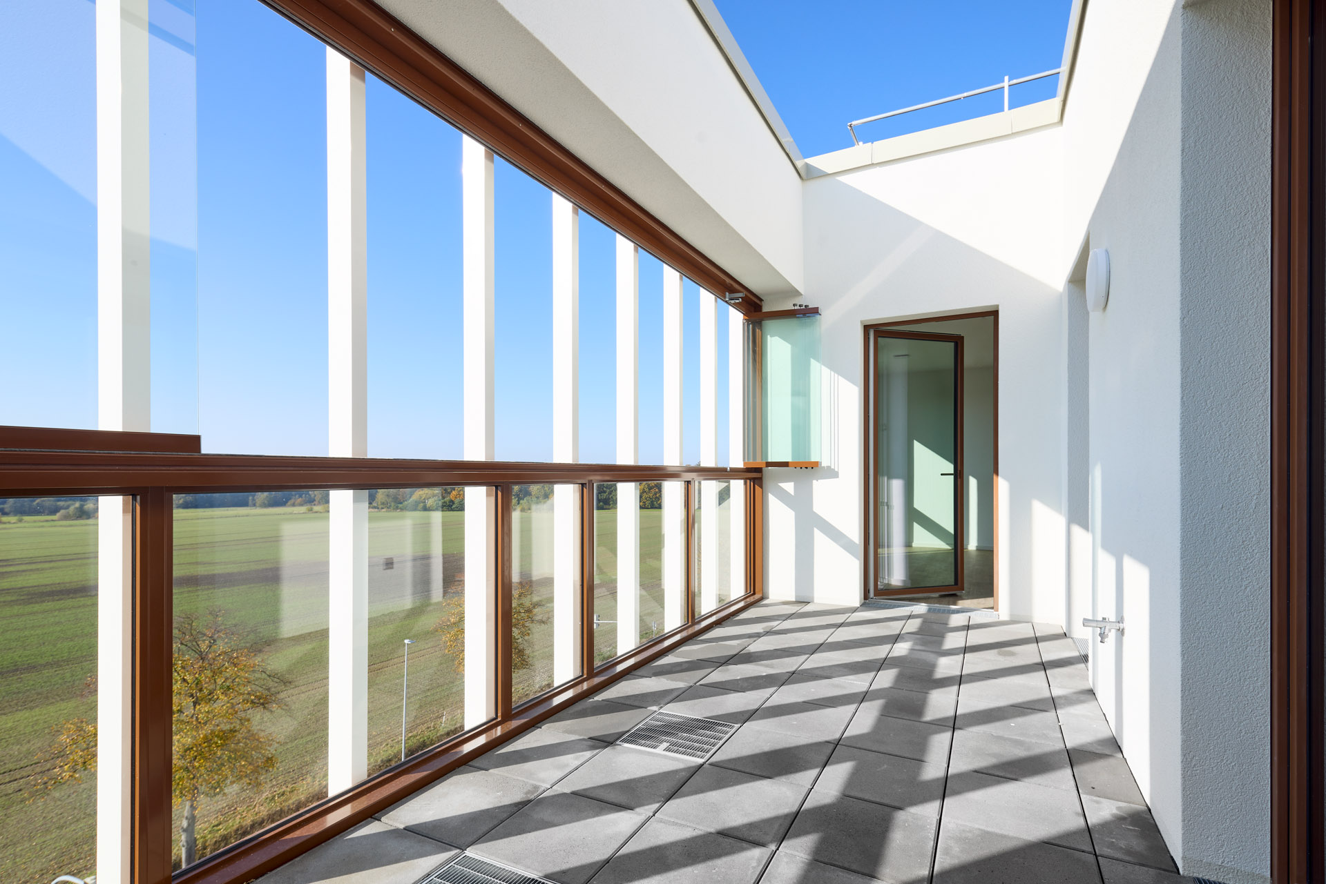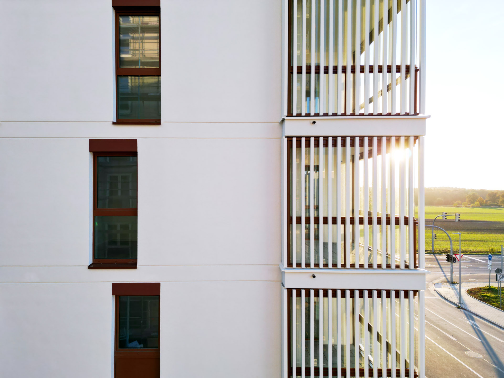 Ein nachhaltiges Wohngebäude im KFW 40 Plus Standard. Mit markanten verglasten Loggien als zusätzlicher Wohnraum und zur Erfüllung von Schallschutz Richtlinien. Unter hohem technischen Anspruch erbaut um den energetischen Ansprüchen von heute gerecht zu werden.